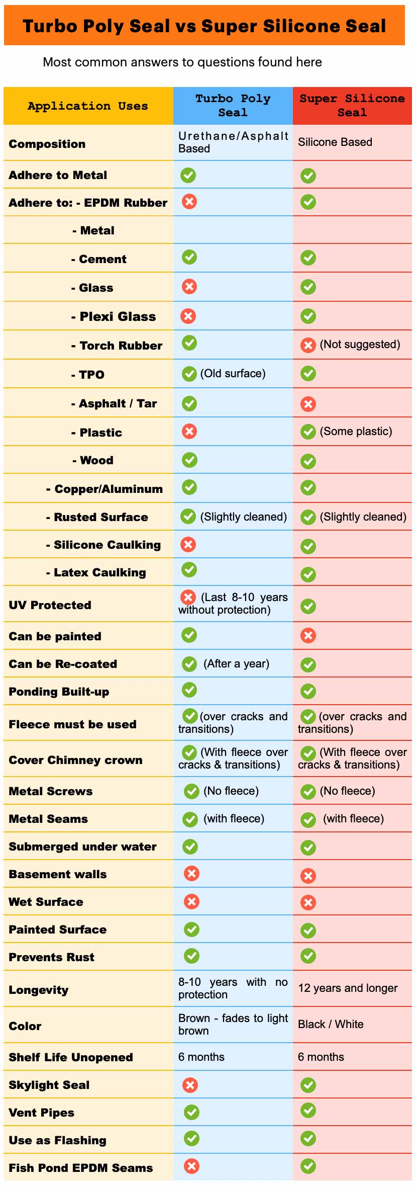 - Turbo Poly Seal will bond to the Aluminum Asphalt (Silver) Coating, but the issue is that the Silver Coating itself can peel away from the surface beneath it. Therefore, you must remove the Silver Coating before applying Turbo Poly Seal.
